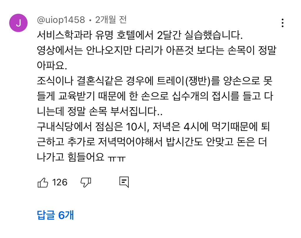 작성자귤뀰슐 작성시간 24.12.14 고딩때 지원할 알바가 호텔 아니면 공장 뿐이라 틈만나면 일일알바 지원해서 했던 기억이... 진짜 다리아프고 발아프고 계속 움직여야하고... 정규직들도 박봉에 힘들었구나