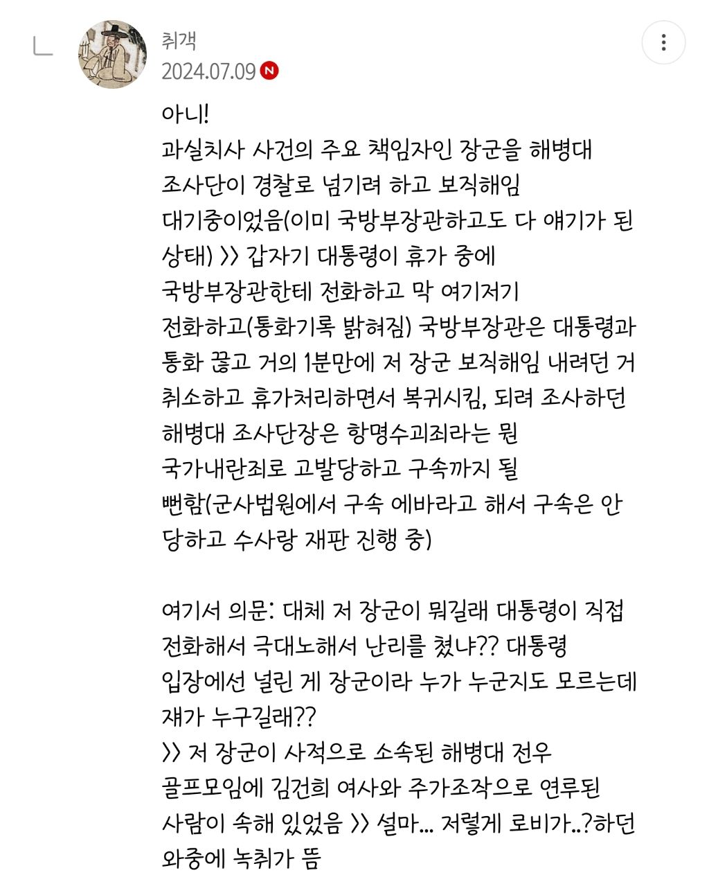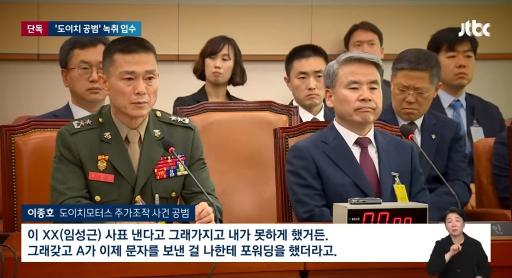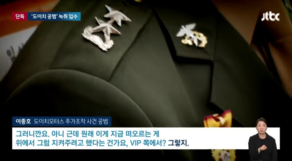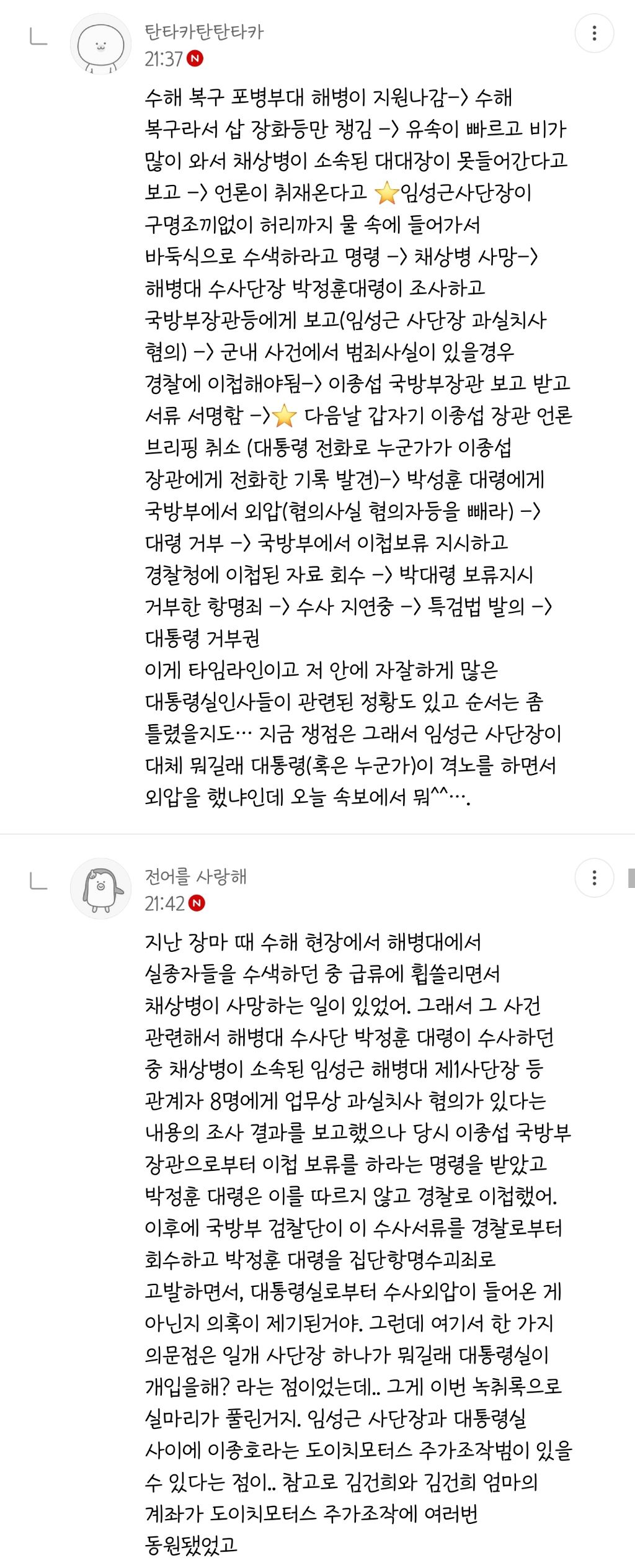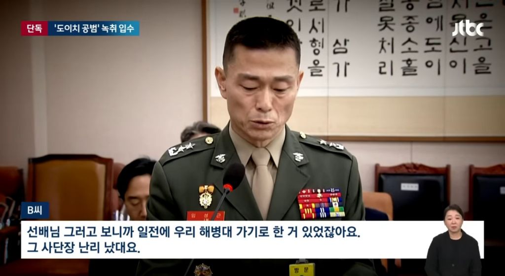 사족) b씨는 이 녹취록을 언론에 제보한 것으로 추정되는 자로, 공익신고자이므로 신분을 명확하게 밝히지는 않았으나 김규현 변호사(박정훈대령의 변호인이자 검사출신, 해병대출신)로 추정됨