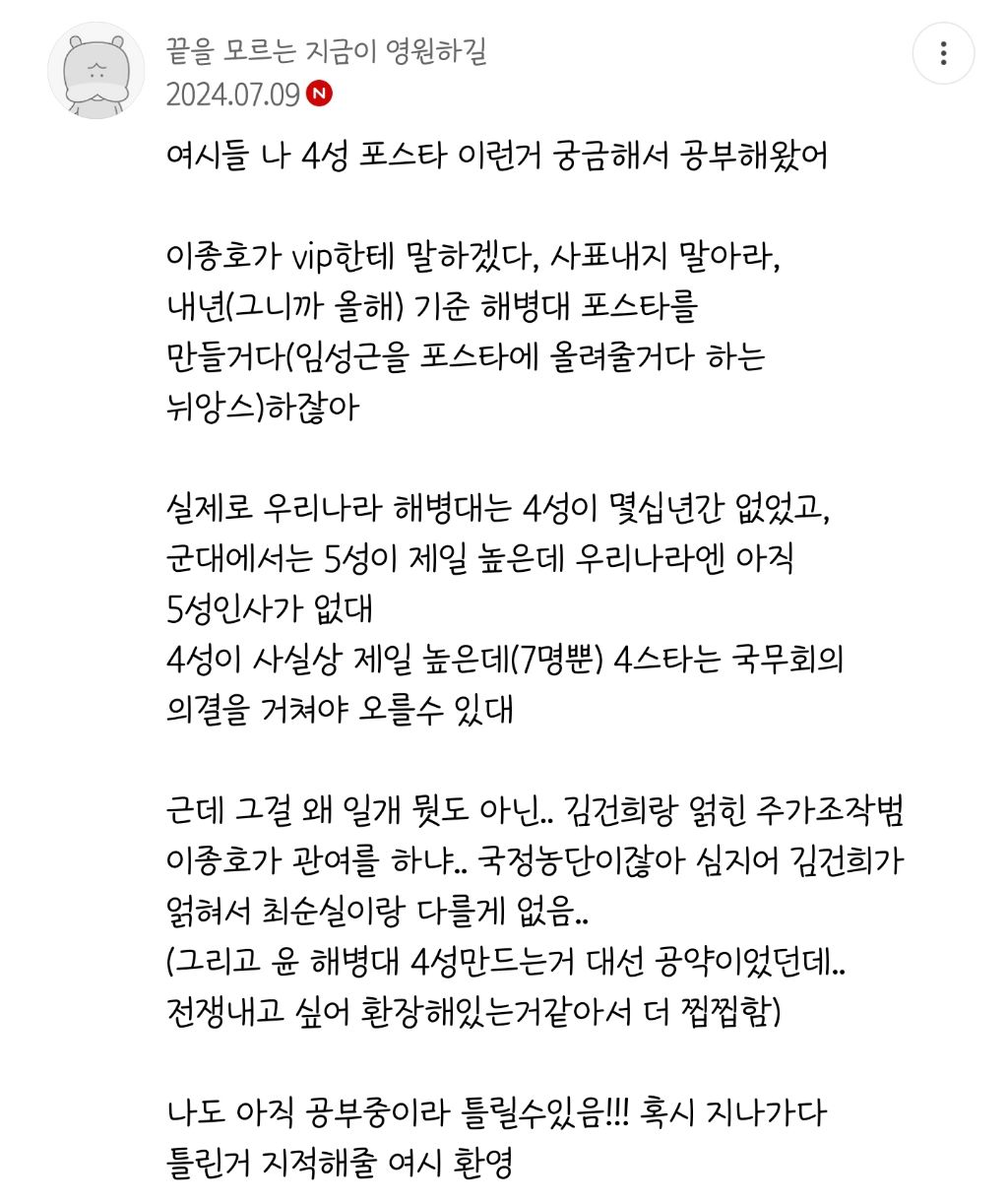 추가) "해병대 별4개 만들거거든" 발언의 의미
