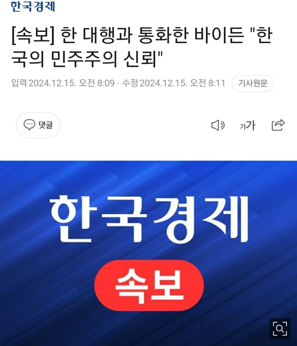 [스크랩] [여시뉴스데스크][속보] 한 대행과 통화한 바이든 "한국의 민주주의 신뢰" 작성자쉬고싶은밤|작성시간24.12.15|조회수4,004 목록 댓글 3 글자크기 작게가 글자크기 크게가 자료출처: 한국경제 다음검색 스크랩 원문 : 이종격투기 현재 게시글 추가 기능 열기 북마크 공유하기 신고 센터로 신고 댓글 댓글 3 댓글쓰기 답글쓰기 댓글 리스트 작성자김명신의 난 | 작성시간 24.12.15 시핥 도람뿌 되기전에 원화 사고 가 작성자power puff girls | 작성시간 24.12.15 한대행 얼떨떨 하겟누 민주주의 축하받고 ㅋㅋㅋ 작성자Christian Petzold | 작성시간 24.12.15 오늘내일하는 할배들 댓글 전체보기