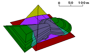 쿠푸왕의 피라미드(노란색), 진시황릉(붉은색), 다이센 고분(초록색) 크기 비교