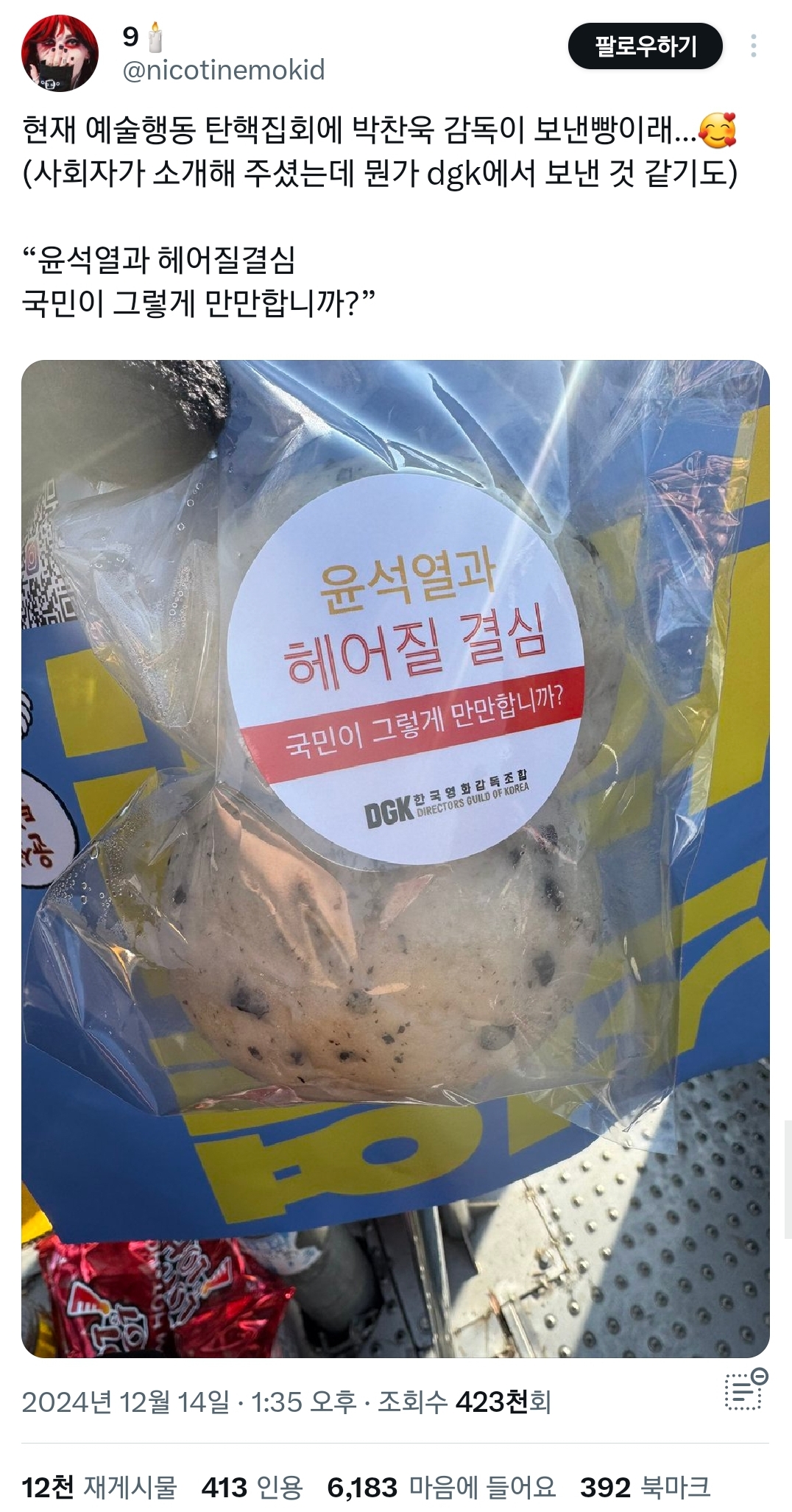 아까 박찬욱이 빵집 빵 다 샀다는 글 올라왔는데