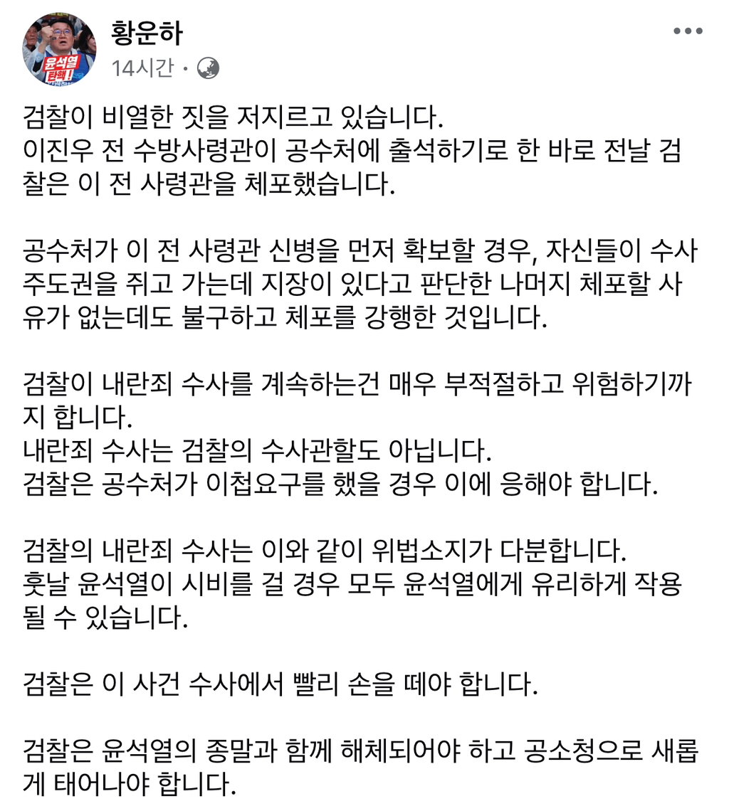 [칵.cxxx]검찰이 공수처로 출석하려는 증인을 체포해감… 작성자소리앙|작성시간24.12.16|조회수15,891 목록 댓글 135 글자크기 작게가 글자크기 크게가 출처: 조국혁신당 황운하 의원 페이스북 다음검색 현재 게시글 추가 기능 열기 북마크 공유하기 신고 센터로 신고 댓글 댓글 135 댓글쓰기 답글쓰기 댓글 리스트 작성자가모라 | 작성시간 24.12.16 저새끼들진짜뭐하는거임? 작성자새콤달콤핑 | 작성시간 24.12.16 미친; 지들이 뭔 권리로 체포하는데 작성자천왕성명왕성 | 작성시간 24.12.16 개검새끼들 이거 못막아?! 작성자내란수괴윤석열씨 | 작성시간 24.12.16 왜저래 미친새끼들이 작성자얄라리얄라렁 | 작성시간 24.12.17 아악!!! 어키할 수 있냐고요ㅠ 댓글 전체보기
