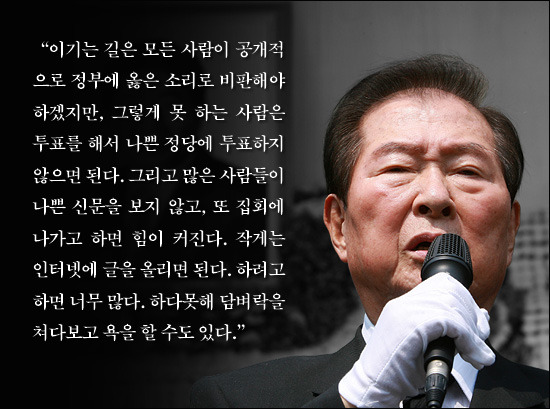 "멍청한 소리 하지 말라 김대중은 가장 유명한 독재자에 목숨 걸고 항거한 사람이었다.