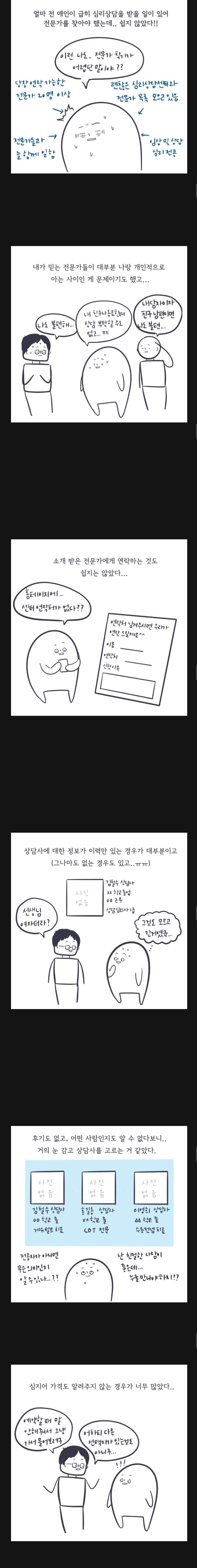 게다가 심리상담1급 있어도 스타일 ㅈㄴ 이상하거나 대충 듣는 타입도 많은데 10만원 돈 내고 그 1회기를 겪어봐야만 그사람의 진행 과정이나 분위기를 알 수 있다? 이건 에바임 심리상담은 내담자 후기가 ㅈㄴㅈㄴ필수인 것 같고 상담받으려는 소비자들한테 가장 파악과 접근이 쉬운 루트 같은데 그런 시스템 자체도 전반적으로 활성화 안되어있잖슴 -