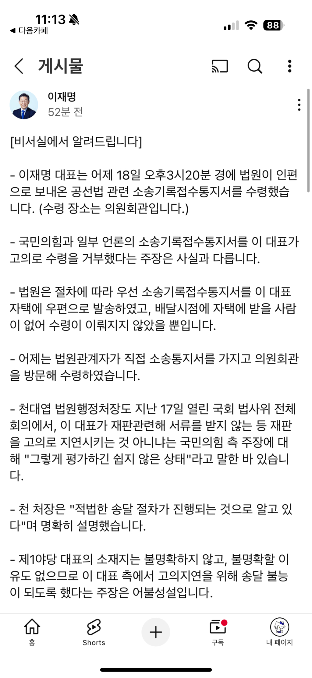 서류 송달 거부는 거짓이며 선동임.