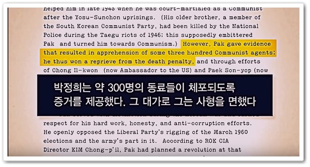 이때 박정희는 약 300명의 동료들이 체포되도록 증거를 제공했다. 그 대가로 그는 사형을 면했다. 그리고 해방 후에는 공산주의자로 활동하다가 체포됐다는 것이다.