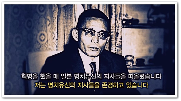혁명을 했을 때 일본 명치유신의 지사들을 떠올렸습니다. 저는 명치유신의 지사들을 존경하고 있습니다. 일본 명치유신의 지사들... 조선 침략의 선봉장 사이고 다카모리, 이토 히로부미, 박정희는 그런 침략자들에게 존경심을 표현한 것이다.