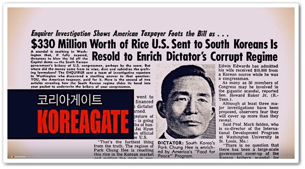 1976년 미국 대륙 전체가 박정희 때문에 큰 충격에 휩싸였다. 박정희 정권이 미국 국회의원들을 돈으로 매수하려던 사건이 발각된 것이다. 이것을 미국 언론들은 '코리아게이트 사건' 이라고 불렀다.