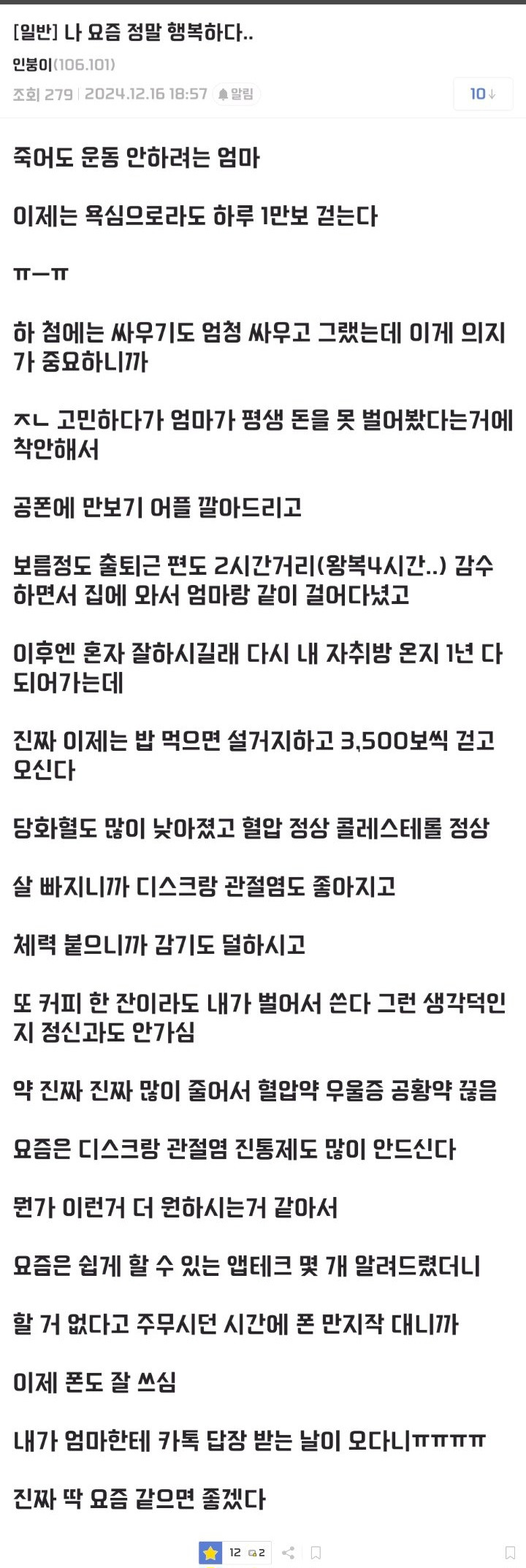 [스크랩] [기타]요즘 정말 행복하다는 디시인 작성자tytyty|작성시간24.12.20|조회수10,538 목록 댓글 31 글자크기 작게가 글자크기 크게가 다음검색 스크랩 원문 : 樂soccer 현재 게시글 추가 기능 열기 북마크 공유하기 신고 센터로 신고 댓글 댓글 31 댓글쓰기 답글쓰기 댓글 리스트 작성자그래도행복할거야 | 작성시간 24.12.20 오 글쓴이 현명하다 역시 억지로 시키는 것보다 원동력을 찾는게 좋구나 작성자짱밍이 | 작성시간 24.12.20 효도ㅠㅠㅠ 작성자요랭이 | 작성시간 24.12.20 우리 엄마도 알려드리니까 손목 스냅 탈탈 계속 털어서 손목만 안좋아짐ㅠㅠ 작성자엘리너해물파전 | 작성시간 24.12.20 오 멋지다 대박 작성자두부먹는중 | 작성시간 24.12.20 와 눈물 엄청 나 사랑이네 댓글 전체보기