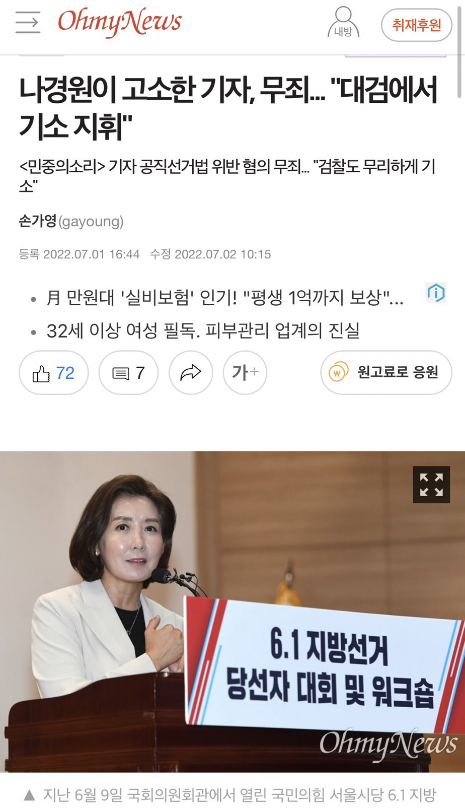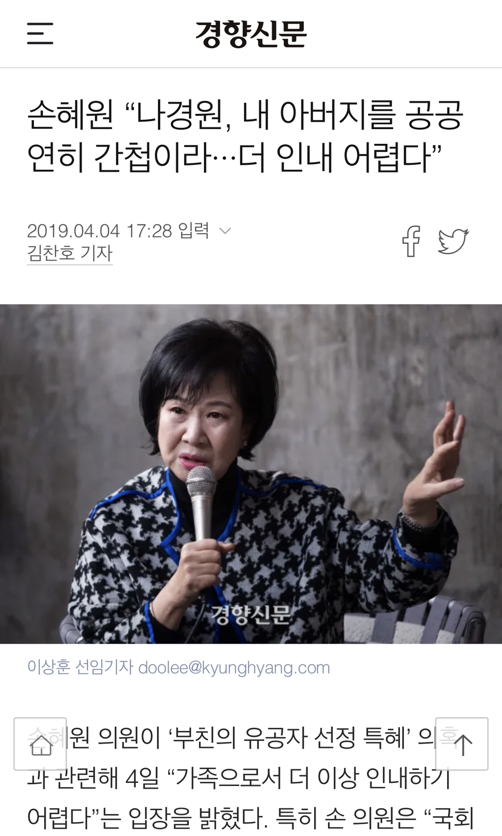 나경원은 해당 기자 고소함