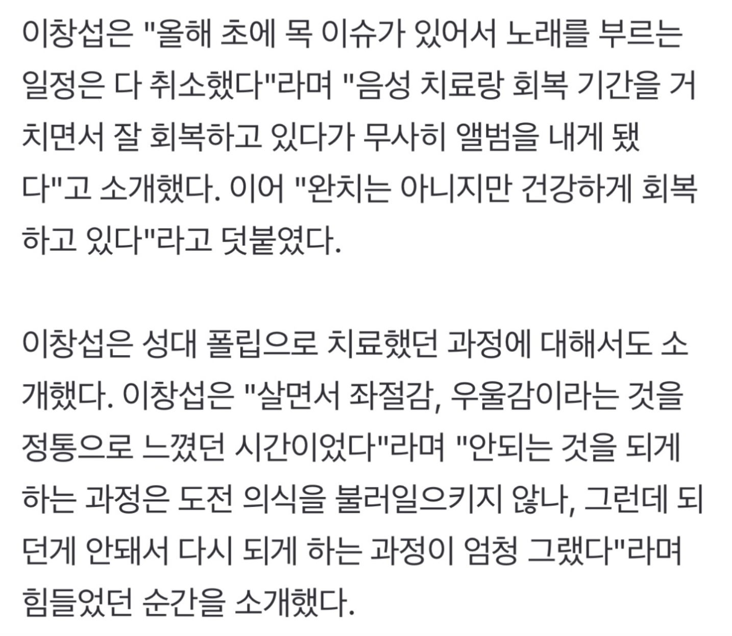 가수한테 성대결절이면 진짜 심적으로도