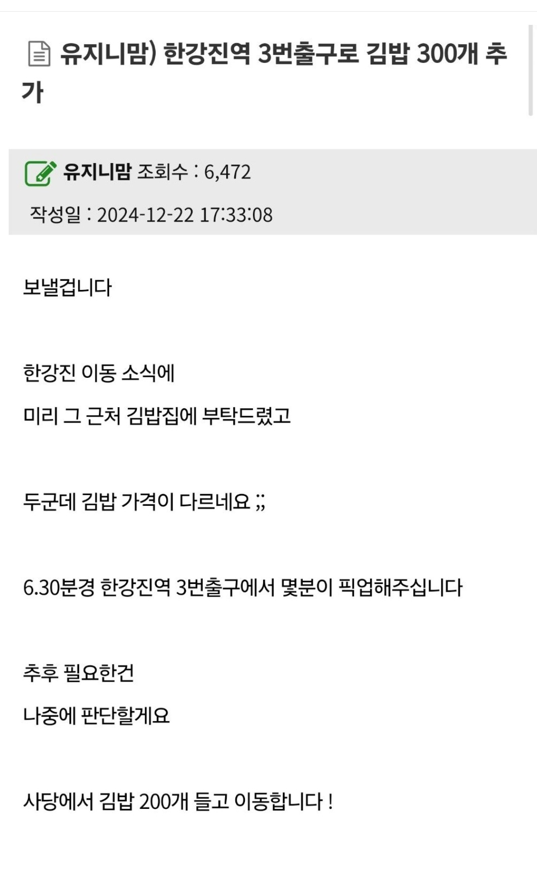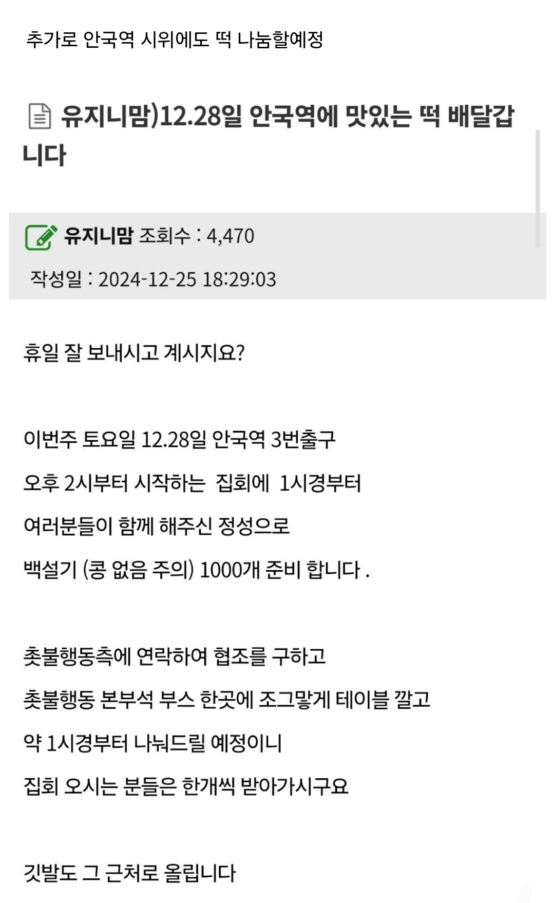 [흥미돋]50대중심 여초사이트에서 남태령/한강진 시위에 많은 후원 한거 알고있어? 작성자dtdewf|작성시간24.12.26|조회수25,139 목록 댓글 194 글자크기 작게가 글자크기 크게가 출처: https://m.cafe.daum.net/baemilytory/8zMg/9657786?svc=cafeapp50대중심 여초사이트에서 남태령/한강진 시위에 많은 후원 한거 알고있어?82쿡이라는 사이트에서 남태령시위랑 한강진에서 준비해주신거82쿡은 50대중심 여초사이트 준비하신분 닉네임도 유지니맘추가로 안국역 시위에도 떡 나눔할예정m.cafe.daum.net콩없는 설기 좋아하는 휀걸들 많아요 오히려 좋아 다음검색 현재 게시글 추가 기능 열기 북마크 공유하기 신고 센터로 신고 댓글 댓글 194 댓글쓰기 답글쓰기 댓글 리스트 작성자헬리오도르 | 작성시간 24.12.27 고마워요...ㅠㅠ 작성자Keep XX no going | 작성시간 24.12.27 여자들밖에없다🥹 작성자서울올림픽 | 작성시간 24.12.27 귄가.. 해당 댓글은 작성자와 운영진만 볼 수 있습니다. 작성자쉼표를많이쓰는여시 | 작성시간 24.12.27 눈 물 , , , 댓글 전체보기