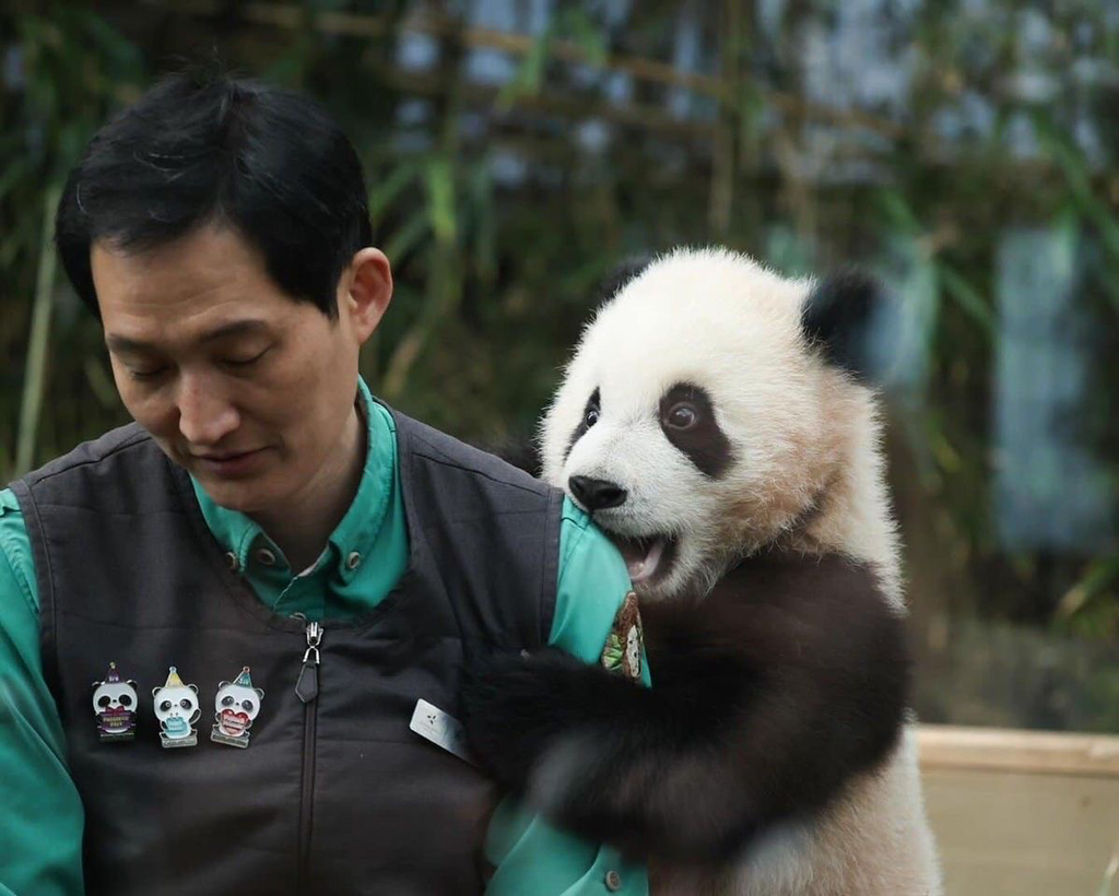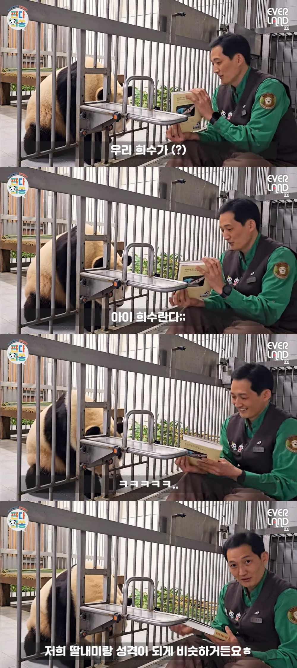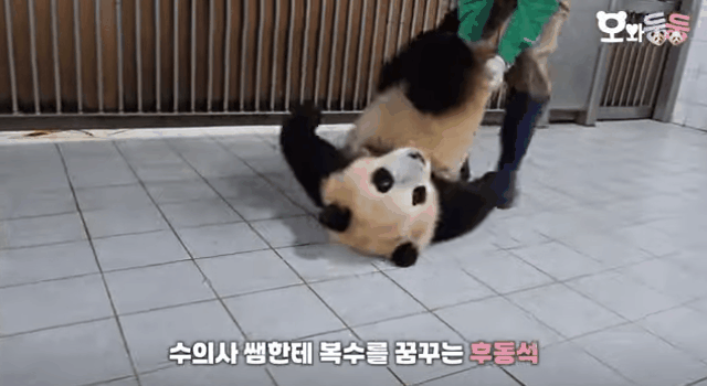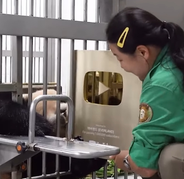 현재 유튜브컨텐츠 비공개됨 (사육사가 아닌 외부인이 판다를 만지면안된다 항의로인하여)