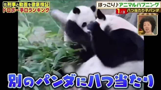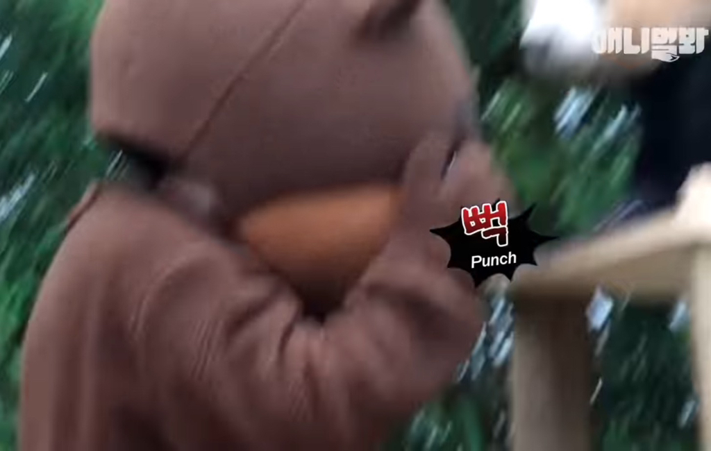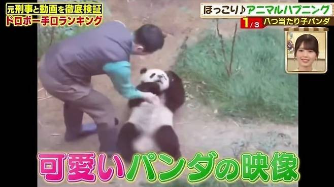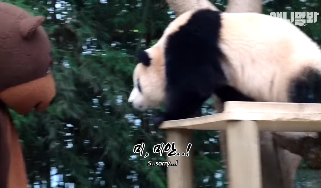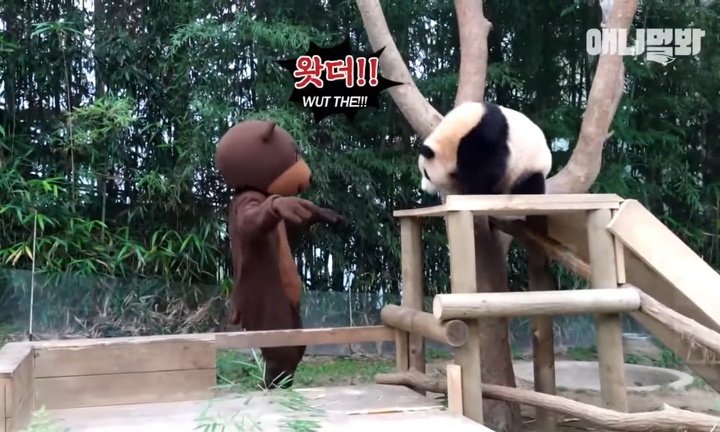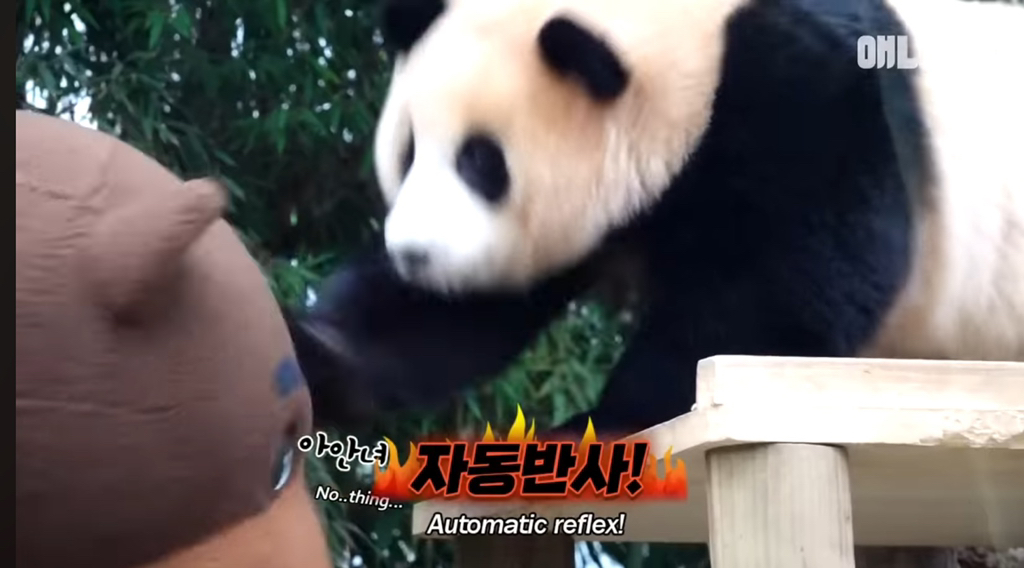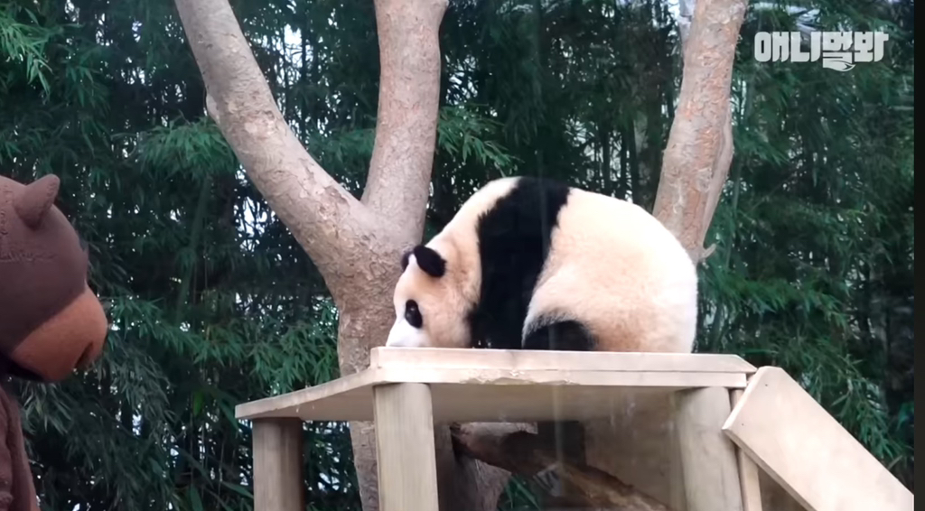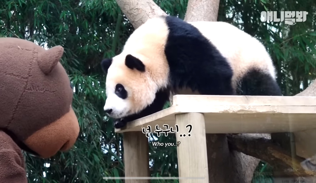 39. 푸바오 독립후 독립훈련 테스트로 곰 분장을하고 푸바오 앞에 나타났는데 푸바오가 선빵을 두대를 날렸다