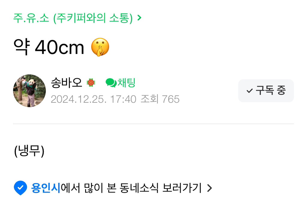 위 내용은 구글&판다달글&더쿠 &바오패밀리디시&유투브 검색으로 정보얻음