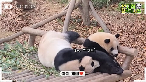 5. 러바오 까치한테 맞고 다님
