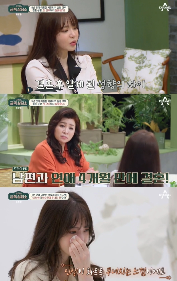 16일 방송된 채널A '오은영의 금쪽상담소'에는 최근 이혼의 아픔을 겪은 성우 겸 배우 서유리가 스튜디오를 방문했다.