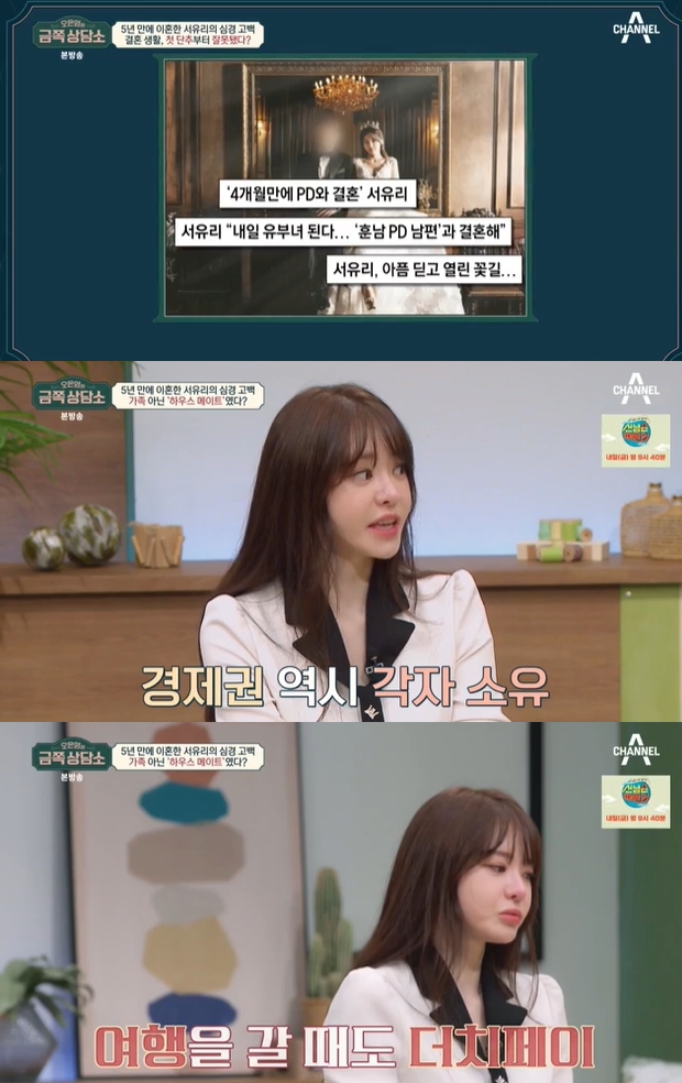 서유리는 "5년을 살았는데 가족이란 느낌이 아니라 하우스 메이트 같았다"고 입을 열었다.