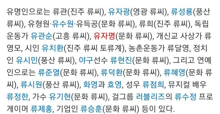 류/유씨라고 다 풍산 아님!!!!!!