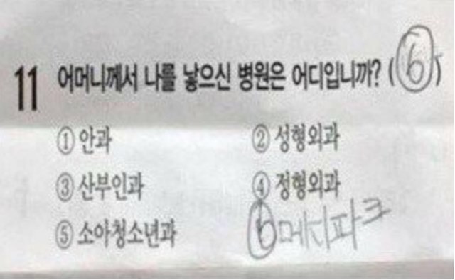 [스크랩] [흥미돋]초딩들의 개웃긴 시험 답안지 모음 작성자슈퍼홍길동|작성시간24.12.28|조회수3,733 목록 댓글 24 글자크기 작게가 글자크기 크게가 ㅁㅂ기린 ㄹㅇ 답 뭐임?🐝잉~ 🐝잉~ 🐝잉~미국초딩귀요미참사싸이에게 감사장을 수여한 부는파든?너 참 답없구나공부는 못하지만 제법 스윗아 진짜 짜징나 다음검색 스크랩 원문 : 쭉빵카페 현재 게시글 추가 기능 열기 북마크 공유하기 신고 센터로 신고 댓글 댓글 24 댓글쓰기 답글쓰기 댓글 리스트 작성자Onebytwosss | 작성시간 24.12.28 기린 런닝맨 이광수 생각한듯 ㅋㅋㅋㅋㅋㅋㅋㅋㅋㅋ 작성자우원식 | 작성시간 24.12.28 어머니 왜 잠자리를 드세요 작성자샤인머스캣도 캣이다 | 작성시간 24.12.28 메디파크 존웃 ㅋㅋzz 작성자똥가루를날려 방구를더크게터뜨려 | 작성시간 24.12.28 ㅋㅋㅋㅋㅋㅋㅋㅋㅋㅋㅋㅋㅋㅋㅋㅋㅋㅋ아 전부다웃겨 작성자오리구너리 | 작성시간 24.12.28 어머니 왜 잠자리를 드세요 댓글 전체보기