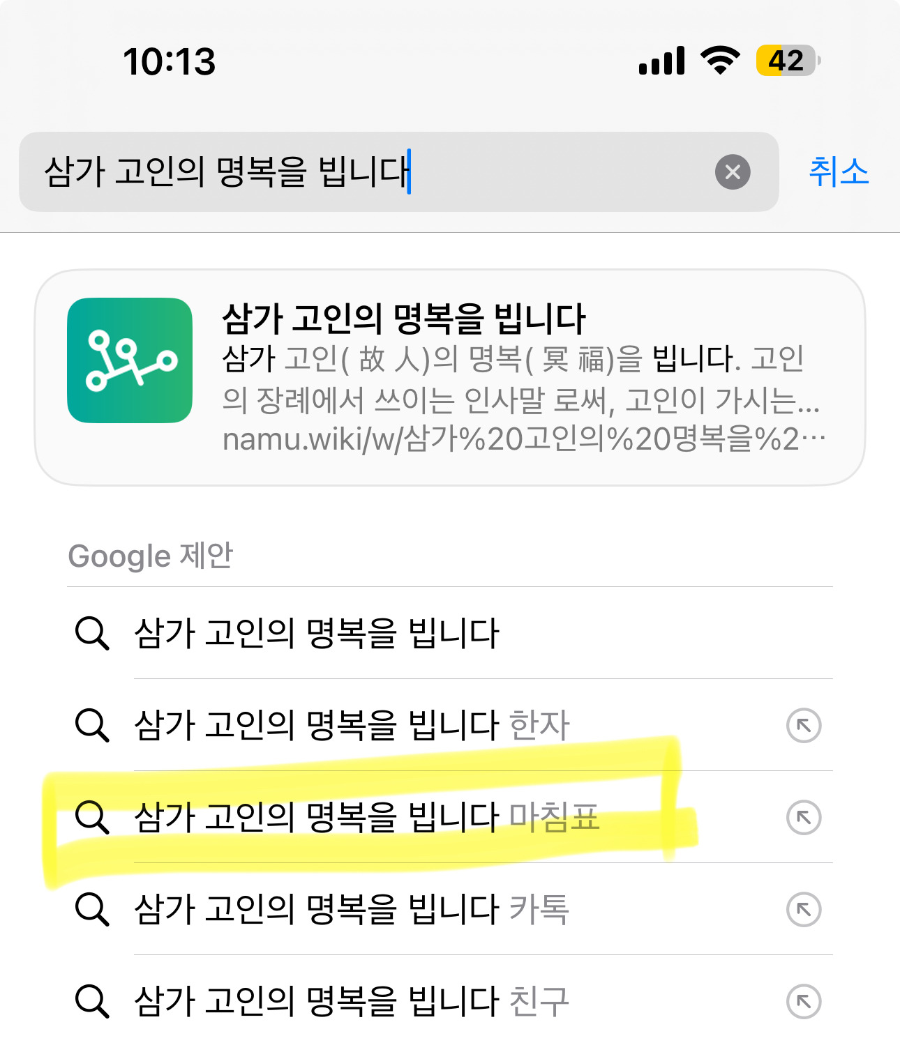 심지어 저 글이 몇번 올라온 후에는 삼가고인의명복을빕니다 <- 라고 안 쓰면 마침표 떼라 띄어쓰기 빼라고 처맞는 분위기까지 형성됐던 걸로 기억;;;