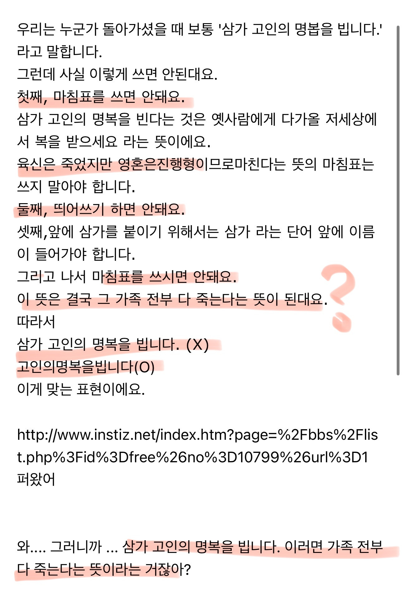 삼가 고인의 명복을 비빔박자로 비빔도 아니고 삼각고인돌에 면봉을 비빕니다도 아니고