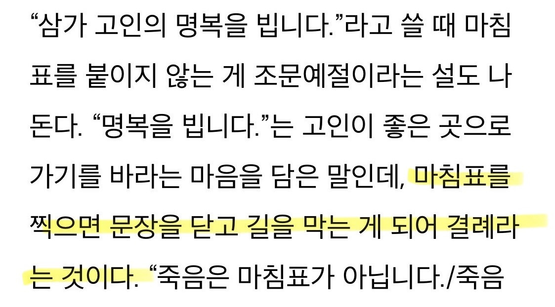 무슨 마침표 하나로 영혼이 구천을 떠돌고