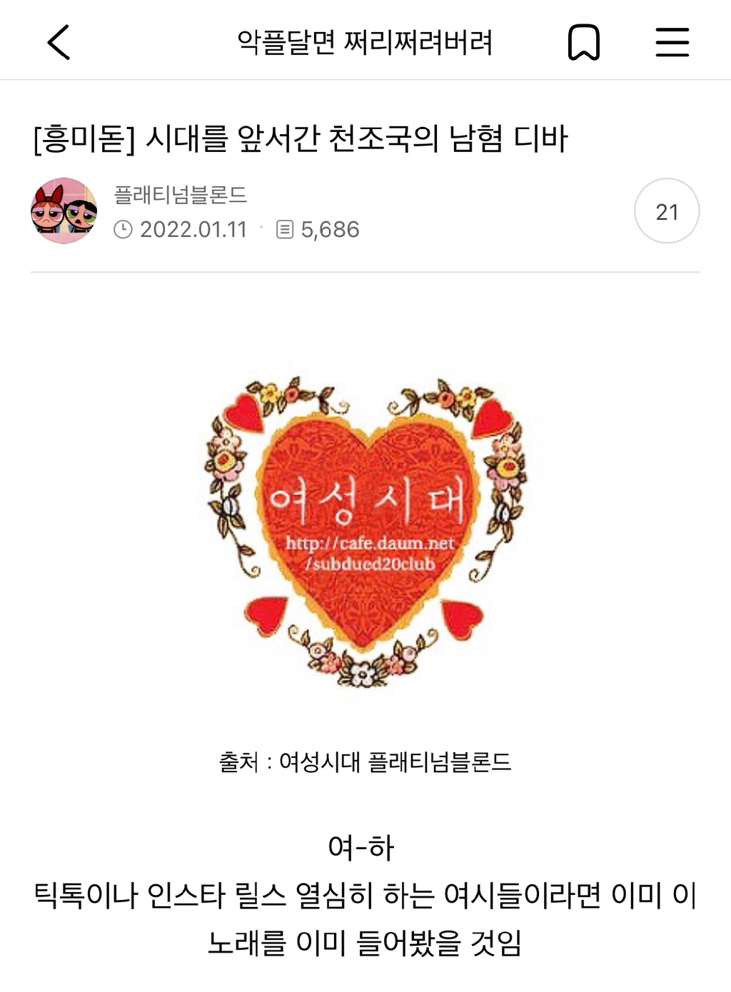 다른 여시가 쓴 글인데 스크랩이 안 됨 ㅠ