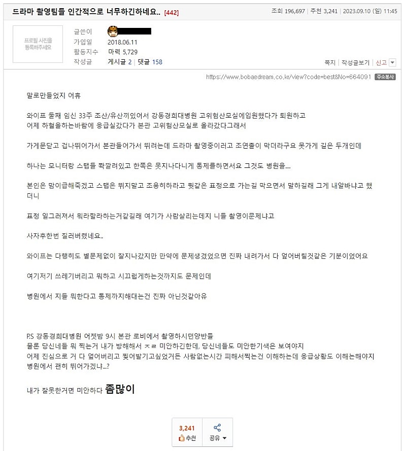 작성자보노보노^^ 작성시간 25.01.02 ㅈㄹ을해요. 뭔 대단한걸 하는것도아니고 고작 드라마 촬영에 저 ㅈㄹ을 떤다고? 하