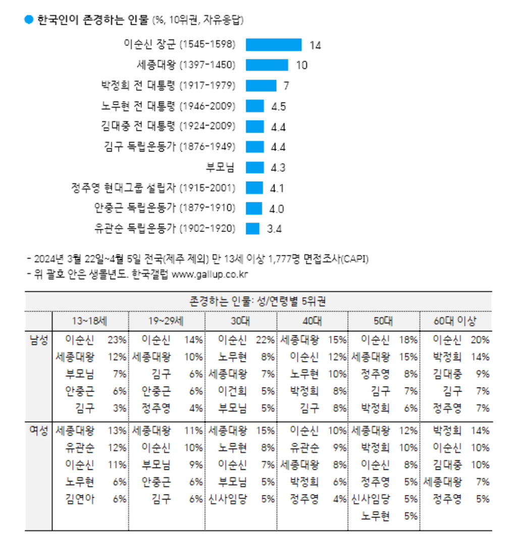 한국인이 가장 존경하는 인물에서 빠지지않는 노무현