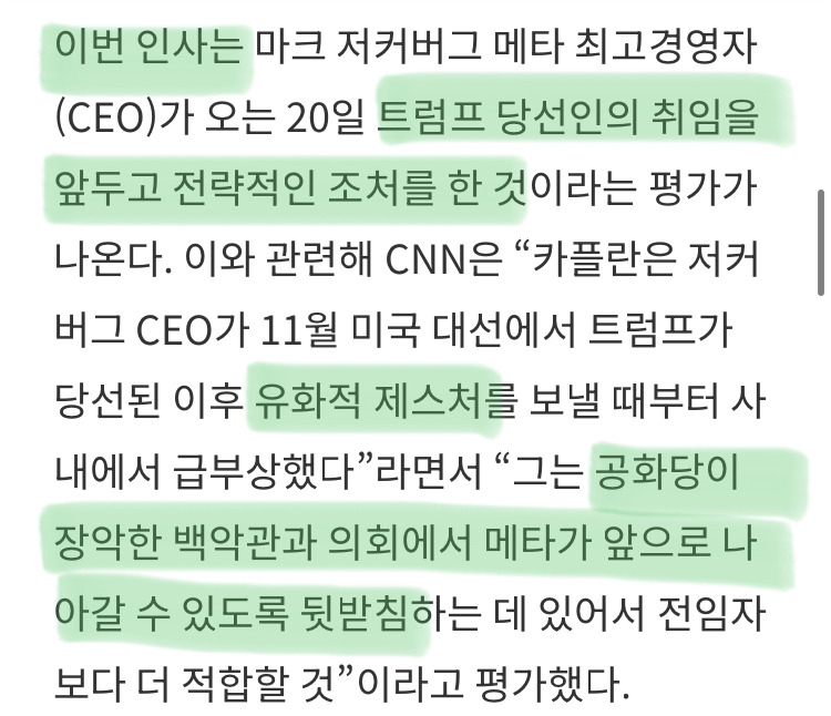[여시뉴스데스크]트럼프 대비하는 저커버그, 메타 임원 공화당원으로 교체 작성자(본인닉네임).|작성시간25.01.03|조회수670 목록 댓글 0 글자크기 작게가 글자크기 크게가 출처: https://m.etoday.co.kr/view.php?idxno=2434580 다음검색 현재 게시글 추가 기능 열기 북마크 공유하기 신고 센터로 신고 댓글 댓글 0 댓글쓰기 답글쓰기 댓글 리스트