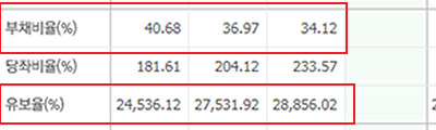 매출액, 당기순이익, 부채비율, 유보율 이 4가지만 잘 보아도 괜찮습니다.