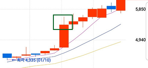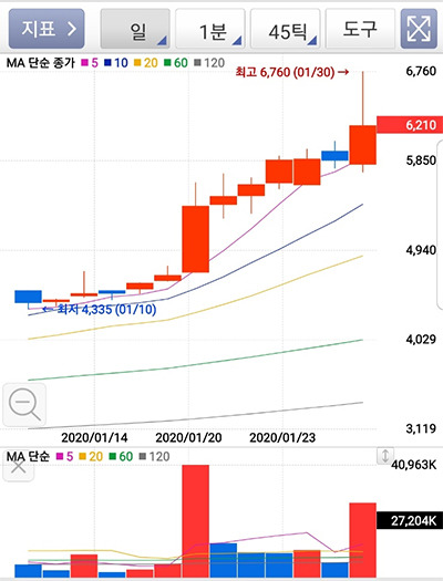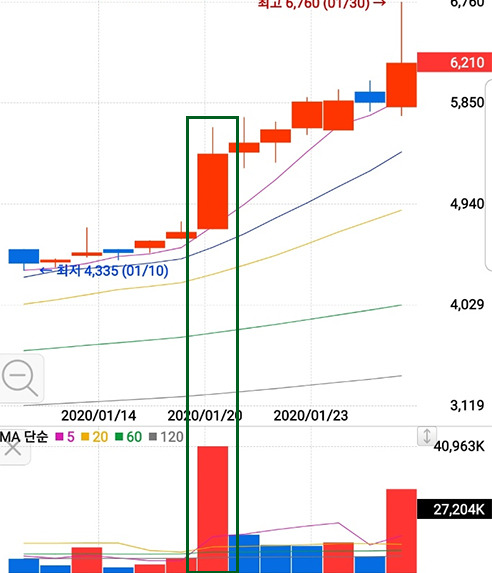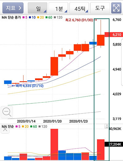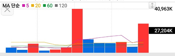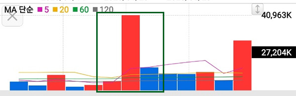 그리고 거래량창을 보면 엄청난 거래량이 발생했지요.