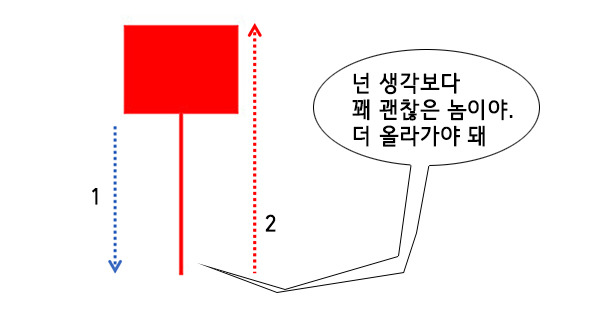 그리고 매수세력이 이겼는지 다음날 주가는 오릅니다.
