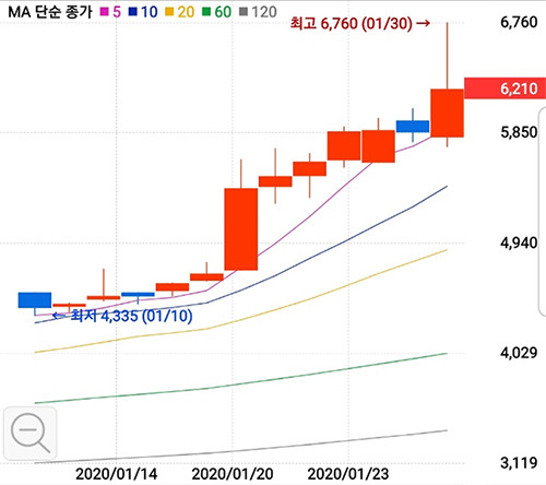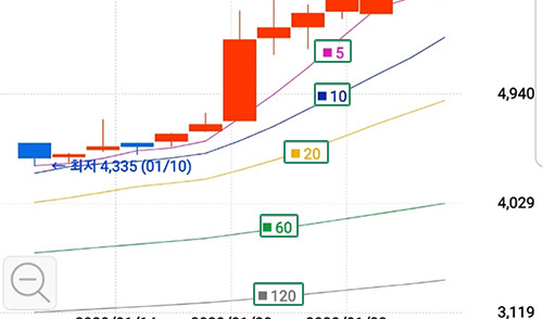 월봉 : 한 달치의 주가변동을 막대에 표시