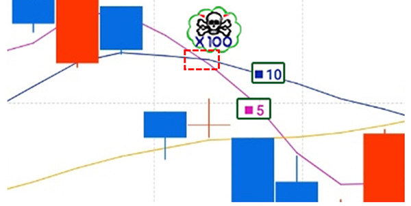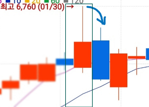 다음날 차트를 보면 확실한게 파란색 굵은 음봉이 떴고