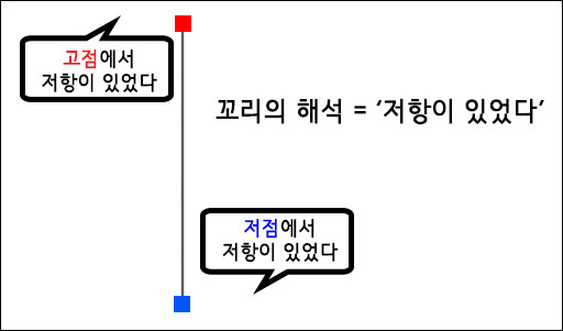 1. 고점에서 저항으로 더이상 올라가지 못했다.
