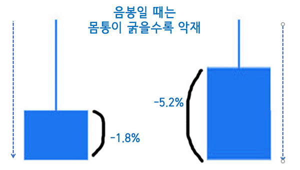(음봉에서는 꼬리말고 제가 표시한 화살표처럼 실제 하락한 길이를 봐야합니다.)