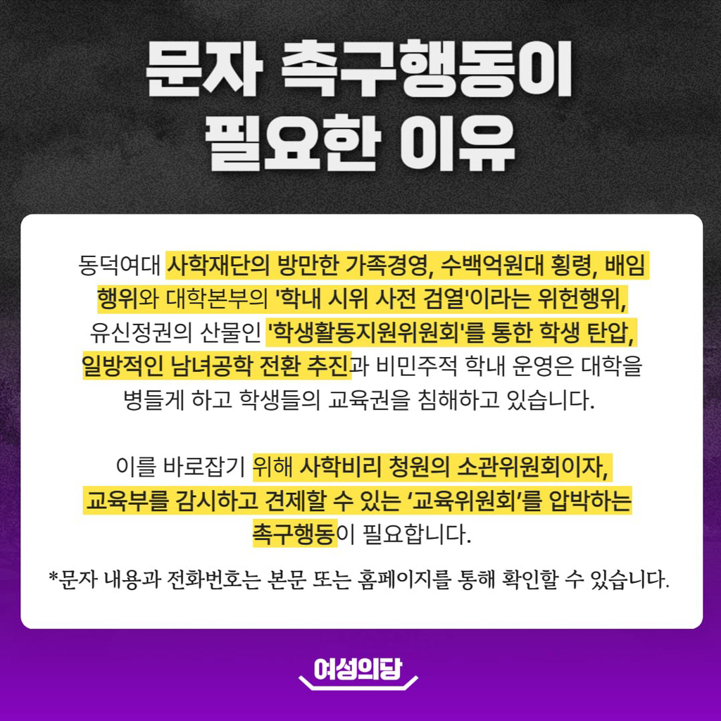 μ¬μ±μλΉμ ν΄λΉ μ²μμ μκ΄μμνμ΄μ κ΅μ‘λΆμ λν κ°μκΆνμ κ°μ§ κ΅μ‘μμνμ λμμ μ΄κ΅¬νκΈ° μν΄ λ¬Έμ μ§μ€ νλμ μ€μν©λλ€.