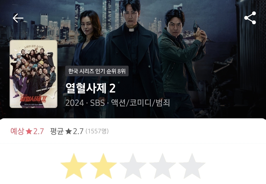 열혈사제1의 찐찐찐팬이 아니라면 추천드리지 않슴다..