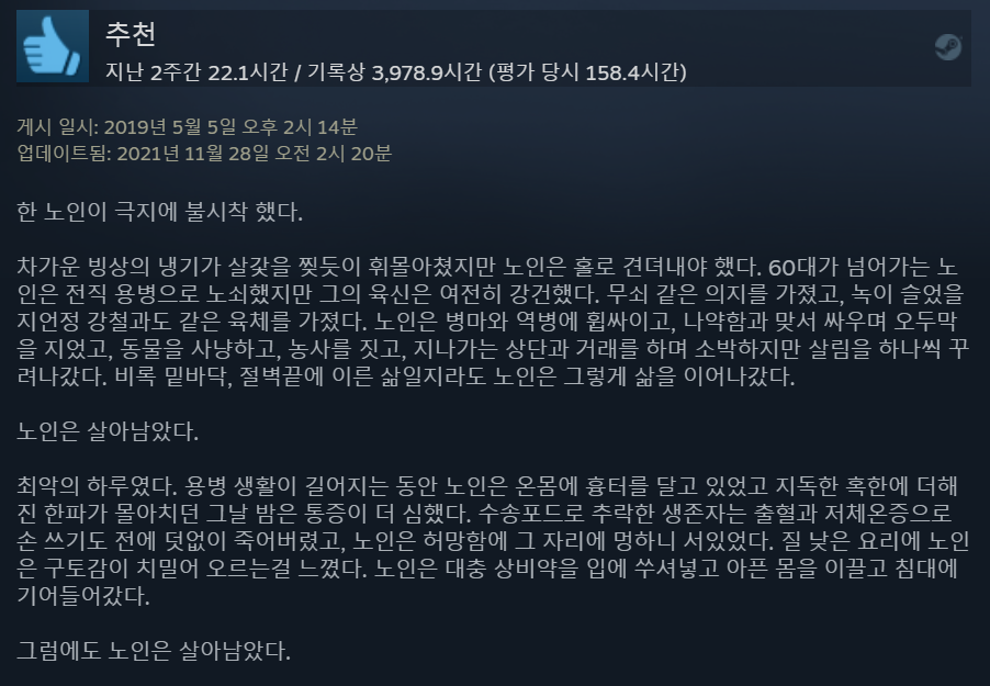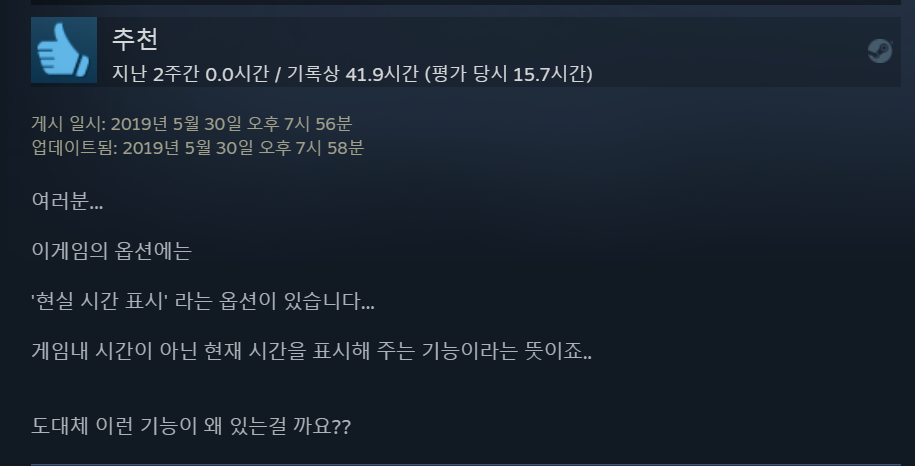 무튼 이렇게 과몰입을 유발하는 림월드의 플레이타임은 무한대에 가깝다고 한다