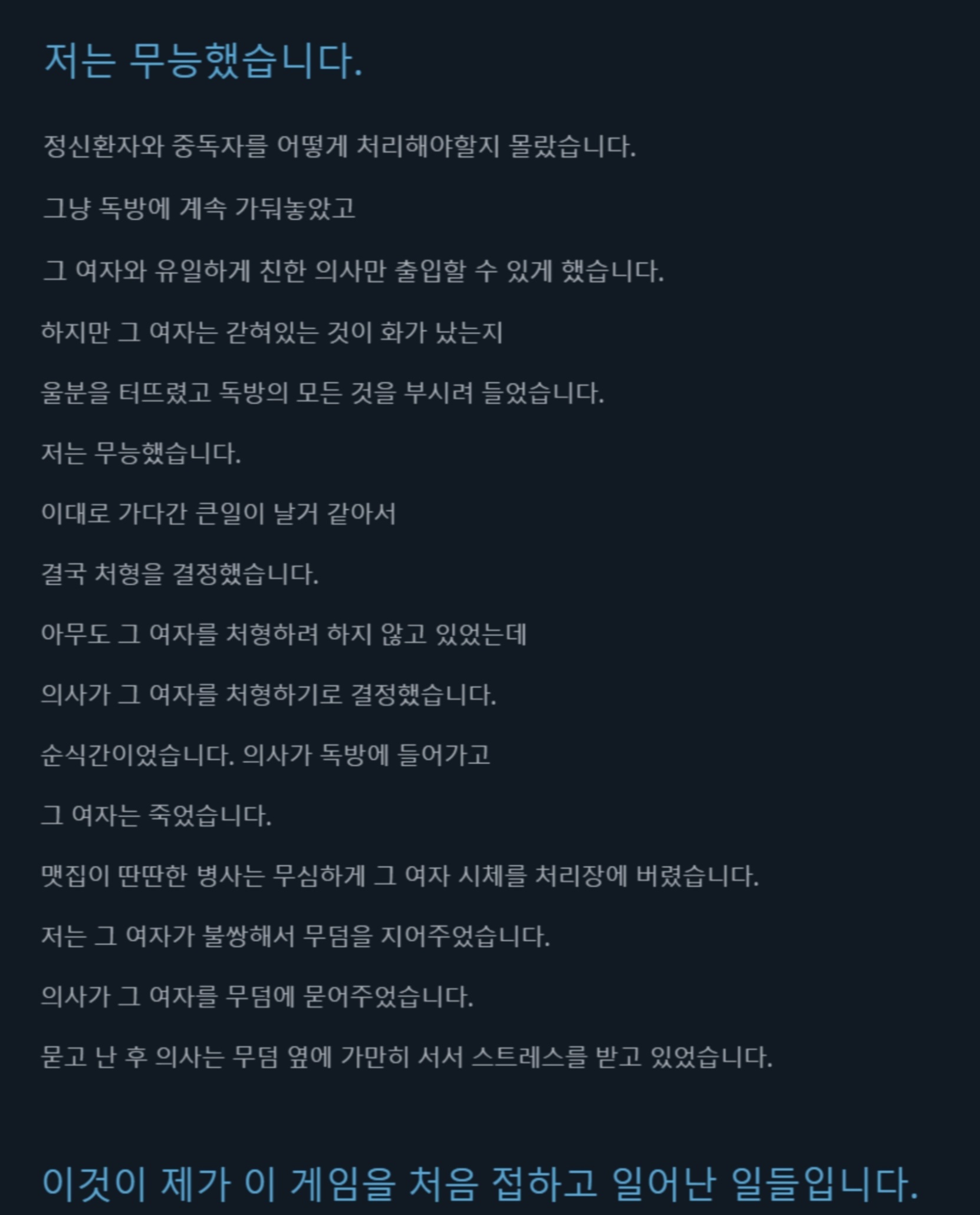 이것이 제가 이 게임을 처음 접하고 일어난 일들입니다.