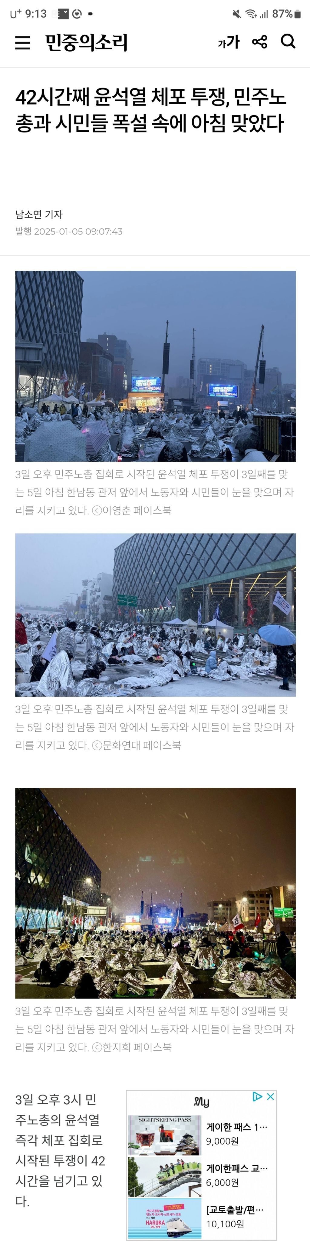 작성자로또당첨정권찌르기 작성시간 25.01.05 공수처야 니네가 그렇게 보여주기식으로 체포도 안하고 질질 끌어서 저 많은 시민들이 눈속에서 저렇게 힘들게 버티고 있다