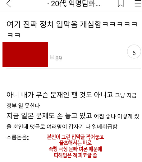 [스크랩] [흥미돋]한남이 여초카페에서 문재인극성빠인척하면서 진보욕먹이다가 걸림.jpg 작성자광신도|작성시간25.01.05|조회수4,293 목록 댓글 7 글자크기 작게가 글자크기 크게가 출처 : 여성시대 Dkidoeoe28세 남자였음 ㅇㅇ이런 반응을 이끌어냄그리고 지가 또 주작글 씀;;;;일본 불매 반대함< 일베발 보수 한남 특징 >1. 진보 이미지를 팬(덕질)하듯이 하는 이미지로 몰기2. 진보세력한테 지가 피해입은척 글씀3. 일본 불매 반대 <- 이건 왜하지 친일인가? 다음검색 스크랩 원문 : *여성시대* 차분한 20대들의 알흠다운 공간 현재 게시글 추가 기능 열기 북마크 공유하기 신고 센터로 신고 댓글 댓글 7 댓글쓰기 답글쓰기 댓글 리스트 작성자드라이컴포트 | 작성시간 25.01.05 암 우리는 ㅇㅈㄹ.. 작성자눈에 머가 드르갔 | 작성시간 25.01.05 형제ㅋㅋㅋ 작성자메킷라 | 작성시간 25.01.05 28살 말투가 어떻게 저래... 작성자dumka | 작성시간 25.01.05 여초에 오지 좀 마 으.. 작성자조쉬 코헨 | 작성시간 25.01.05 냄새나 시발 댓글 전체보기