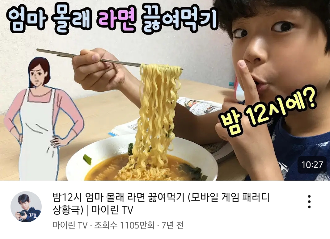 초딩때 엄마 몰래 라면 끓여먹기 컨텐츠가 조회수도 터지고 반응도 좋았음