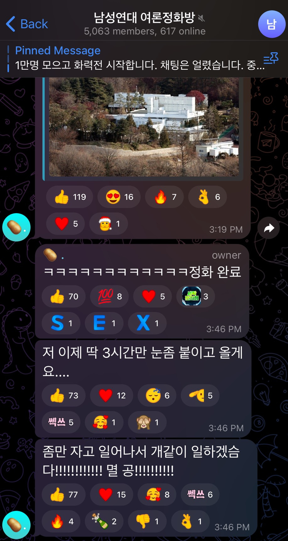작성자20240716 작성시간 25.01.06 와 여시야 이거 여시가 직접 들어가서 캡쳐한거야???? 왜냐면 최근에 내 직장커뮤니티에서 정치얘기하면서 누가봐도 일베펨코느낌의 글 올리면서 분탕질치는 놈들이 몇 생겼거든 여튼 그 커뮤니티에 저격글 올리고 싶어 이런 단체활동을 하고 있다고