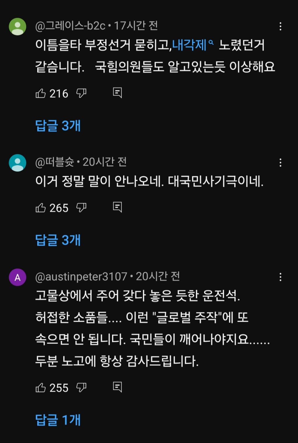그리고 이걸 완전히 믿는 수천개의 댓글들