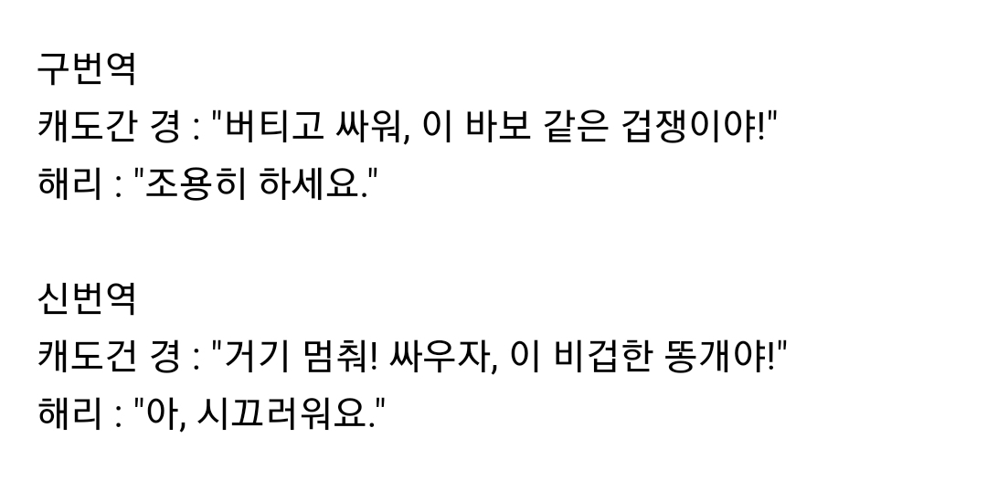 어떤 오역들은 뜻을 왜곡해서 주요캐릭터의 캐릭터성까지 왜곡해버림