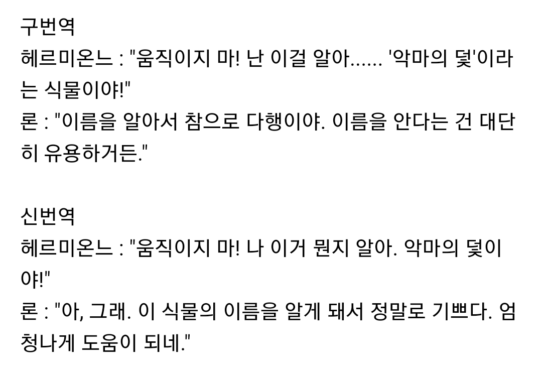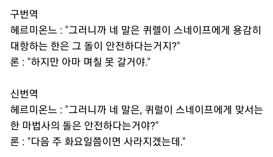 론은 헤르미온느한테 빈정대는건데 구번역은 의미 전달 x